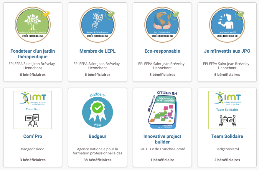 Ce site est le résultat d'une collaboration entre Le Dôme, la Chambre d’agriculture de Normandie (CRAN), la CMA Normandie et le réseau Canopé. Il propose "des outils pour faciliter et accélérer l’usage des Open badges au service de l’orientation et de la formation", avec notamment un générateur de visuels d'open badges.