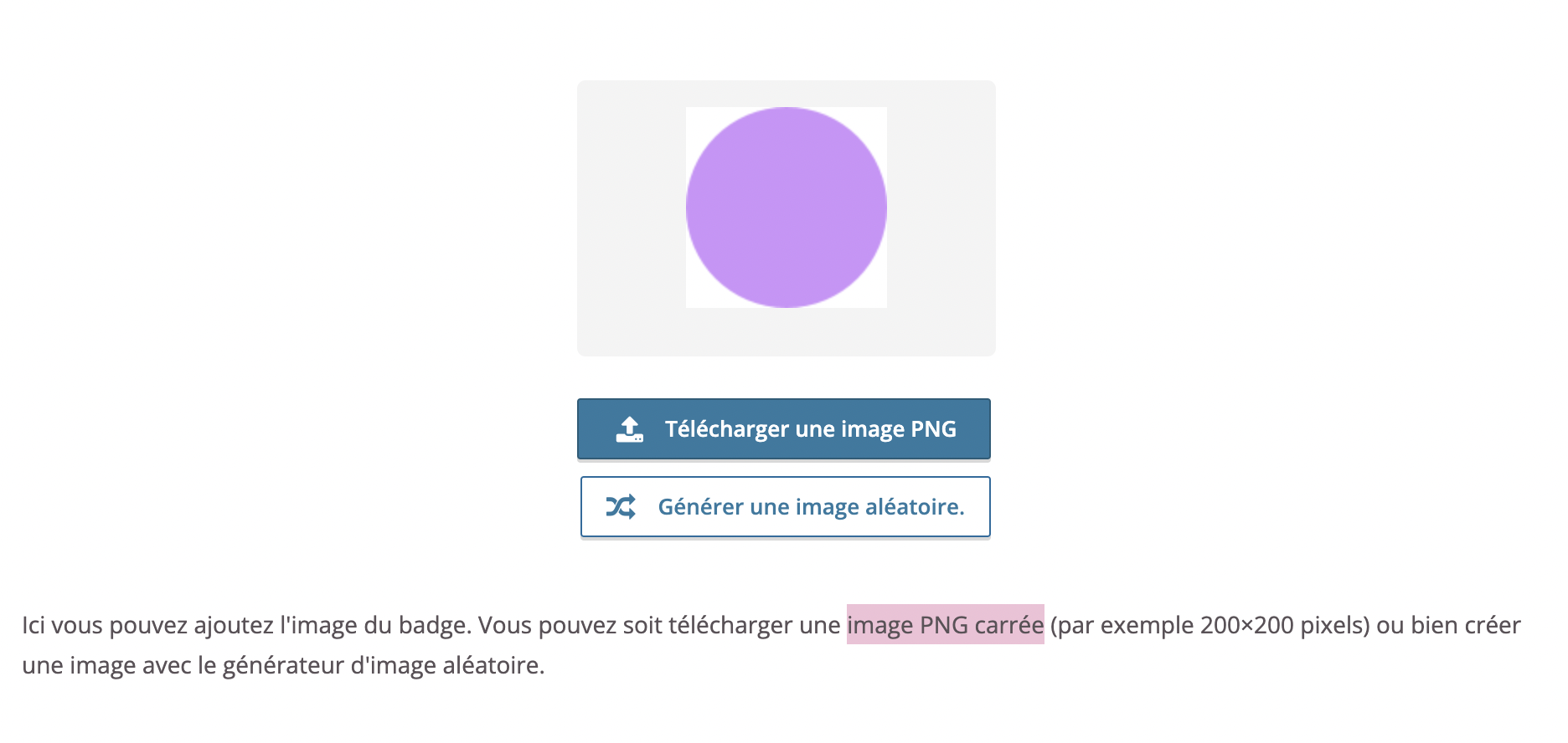 Vous pouvez aussi essayer de déposer votre badge sur une plateforme dédiée, comme Open Badge Passport (création de compte nécessaire). Le poids du fichier est limité à 250Ko, si votre image est plus lourde pensez à diminuer sa taille pour réduire son poids.