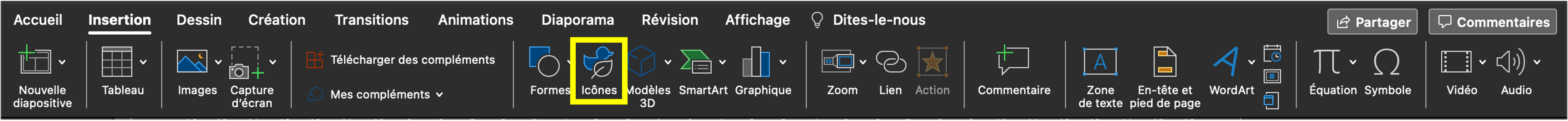 Les icônes utilisées ici sont disponibles dans PowerPoint avec l'abonnement à Microsoft 365. Si vous ne les voyez pas, vous pouvez les télécharger ci-dessous (utilisez le format PNG si le SVG ne fonctionne pas).