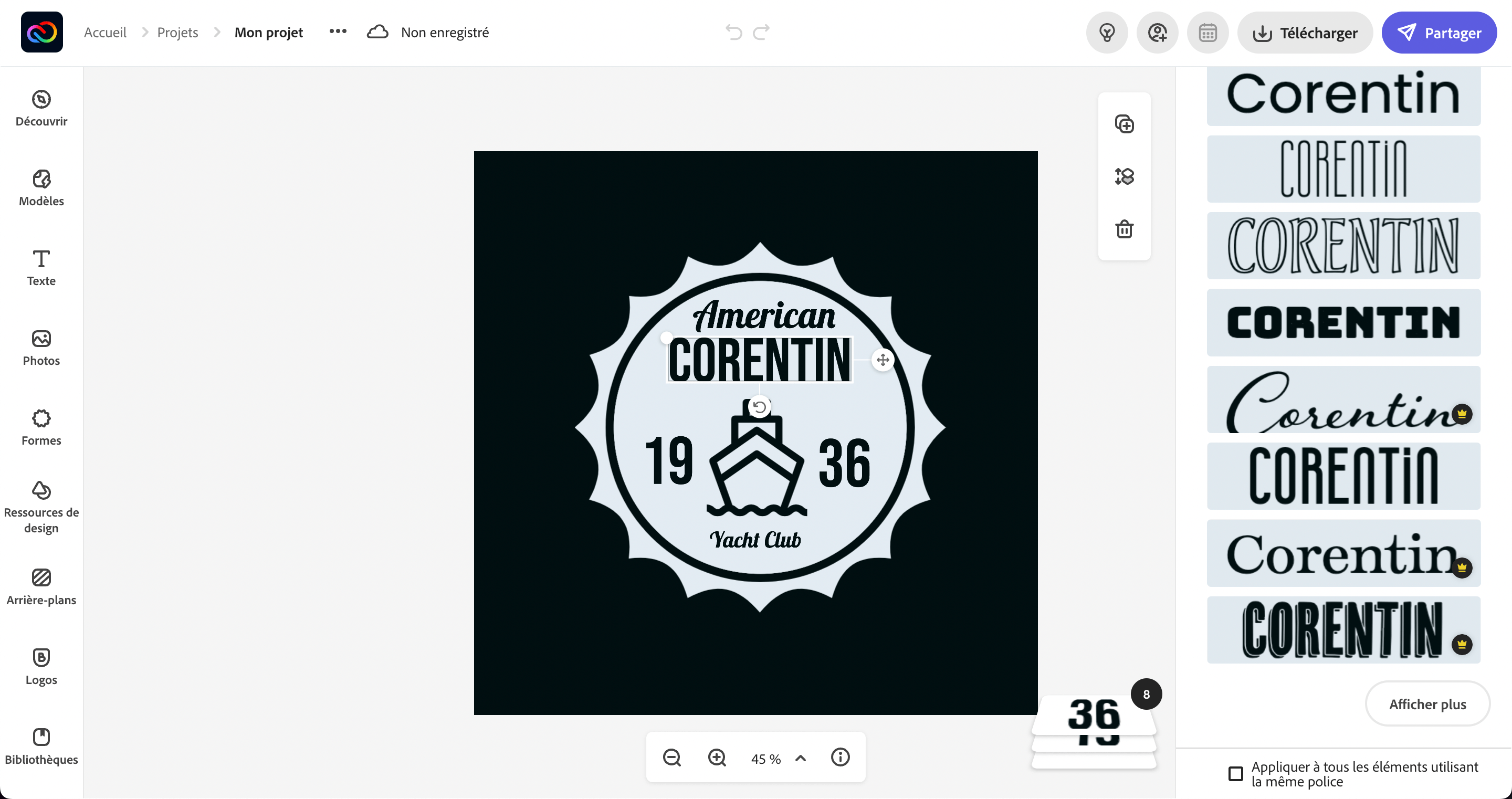 Les modèles proposés ont un aspect professionnel et l'éditeur semble plus poussé que les autres générateurs, il y a beaucoup d'options. Pour le texte par exemple, on peut modifier la police, la graisse, la taille, la couleur, ajouter des effets de contour, des bordures, déformer le texte en arrondi...