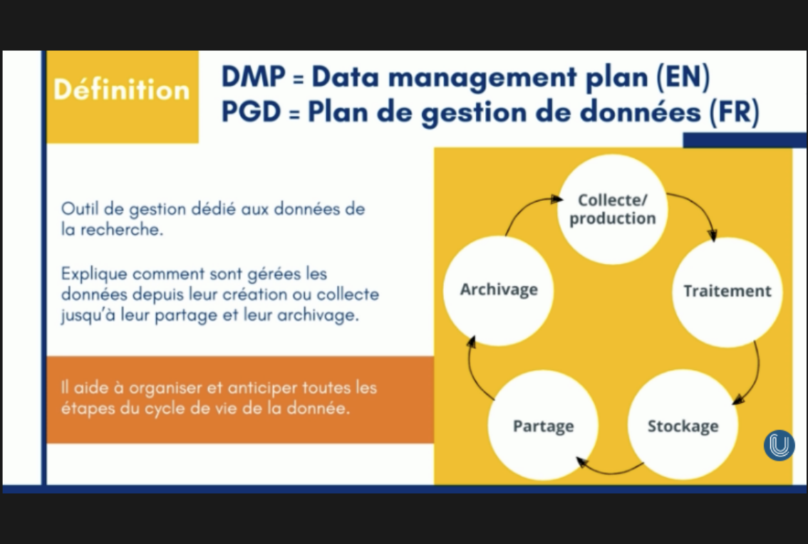 Dans le cadre de la structuration des projets de recherche, la gestion des flux de données en Biologie et en Bio-Informatique est un enjeu majeur pour les chercheurs qui devront mettre en place une organisation allant de la génération des données jusqu'à leur pérennisation, en passant par leur analyse. Dans un tel objectif, l'identification des infrastructures de génération, d'analyse et de pérennisation des données mais également l'adoption de bonnes pratiques de gestion de données est essentielle.