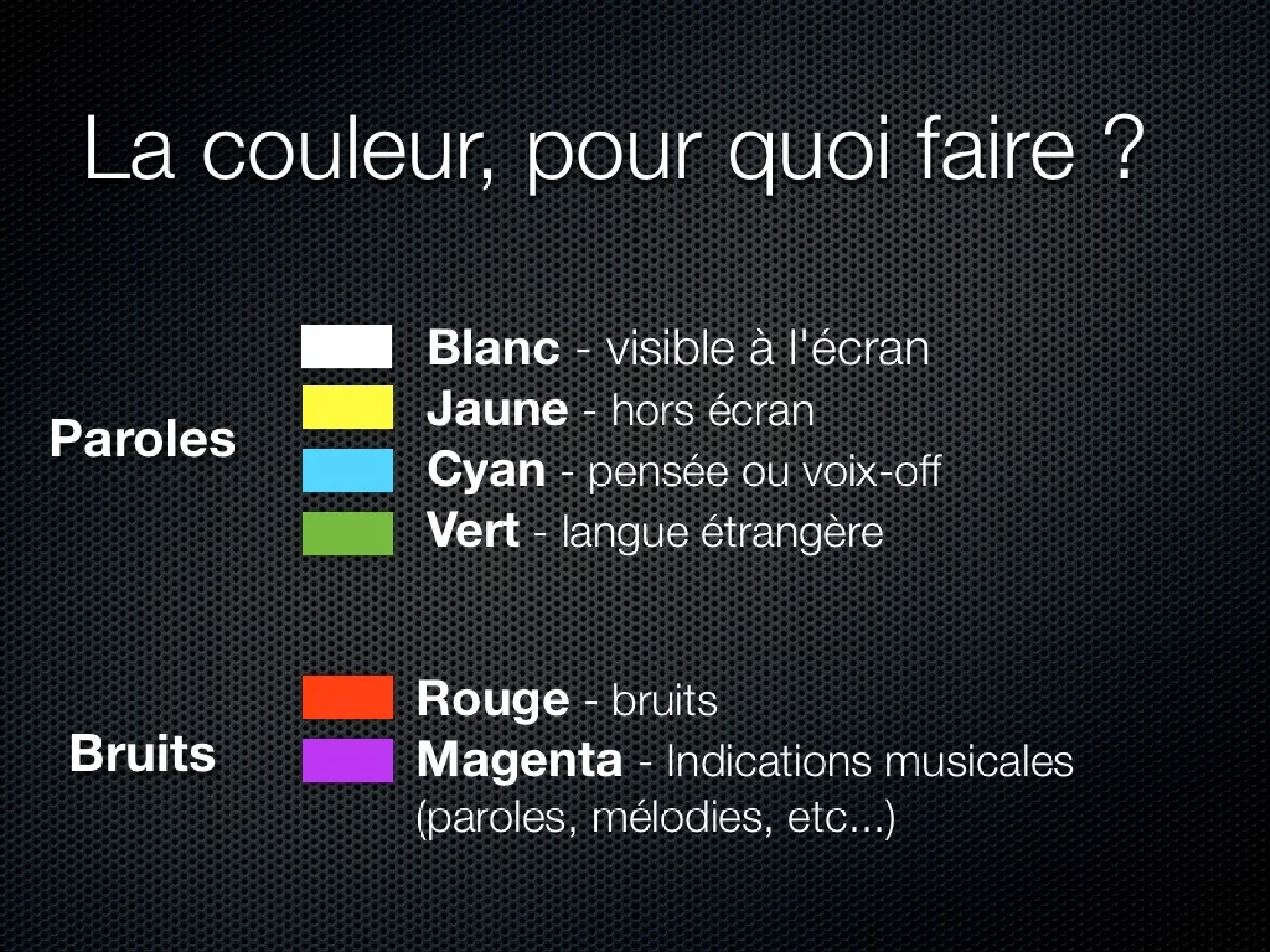 Dans cette partie nous verrons les spécificités des Sous-Titres Malentendants Harmonisés par rapport au sous-titrage simple.