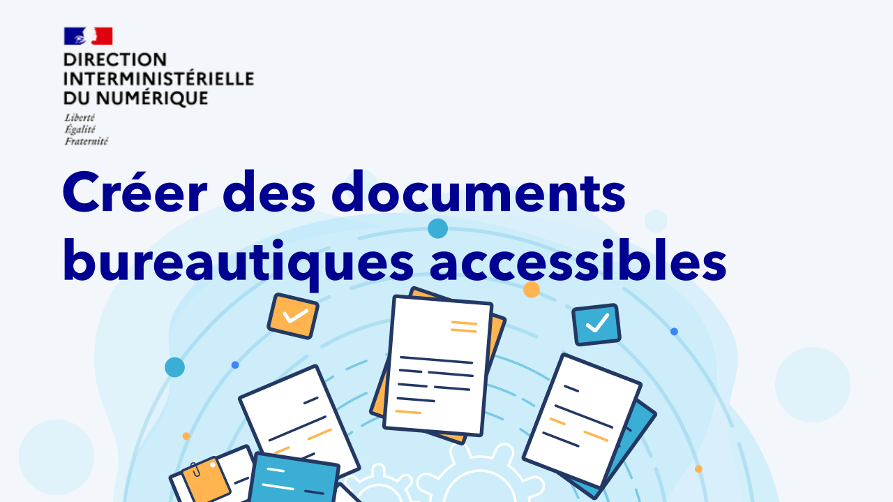 Le présent document décrit les principes généraux à appliquer pour produire des contenus bureautiques accessibles. Ces principes sont déclinés sous forme de procédures spécifiques, présentées et illustrées dans des guides dédiés téléchargeables, pour les logiciels suivants :