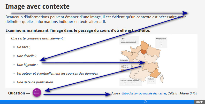 L’objet de ce cours est de sensibiliser les participants aux enjeux de l'accessibilité ainsi que de présenter un certain nombre de règles et recommandations à suivre, à travers neuf grands points. L'objectif de ce cours n'est pas de lister l'intégralité des principes favorisant l'accessibilité, mais bien de proposer une véritable entrée en matière, afin de vous permettre d'appréhender les points essentiels de cette thématique et ainsi commencer à rendre vos contenus accessibles au plus grand nombre. Pour augmenter le niveau d’accessibilité de vos contenus, vous pouvez consulter les documents d’aide à la création de documents bureautiques accessibles, réalisés par la Direction Interministérielle du Numérique.