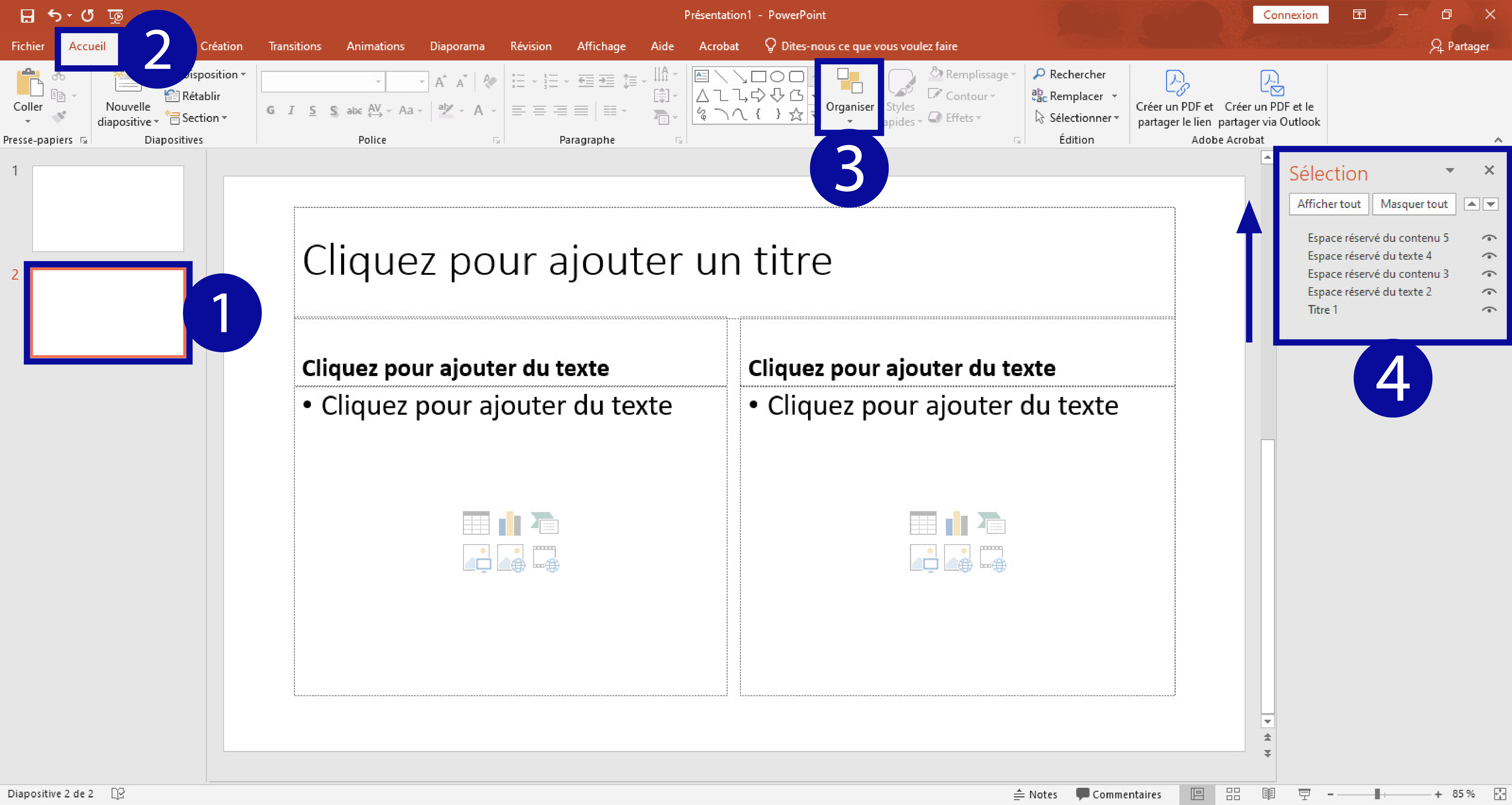 - Modifier l'ordre de lecture d'une diapositive ou d'un modèle de diapositive (masque / maîtresse).