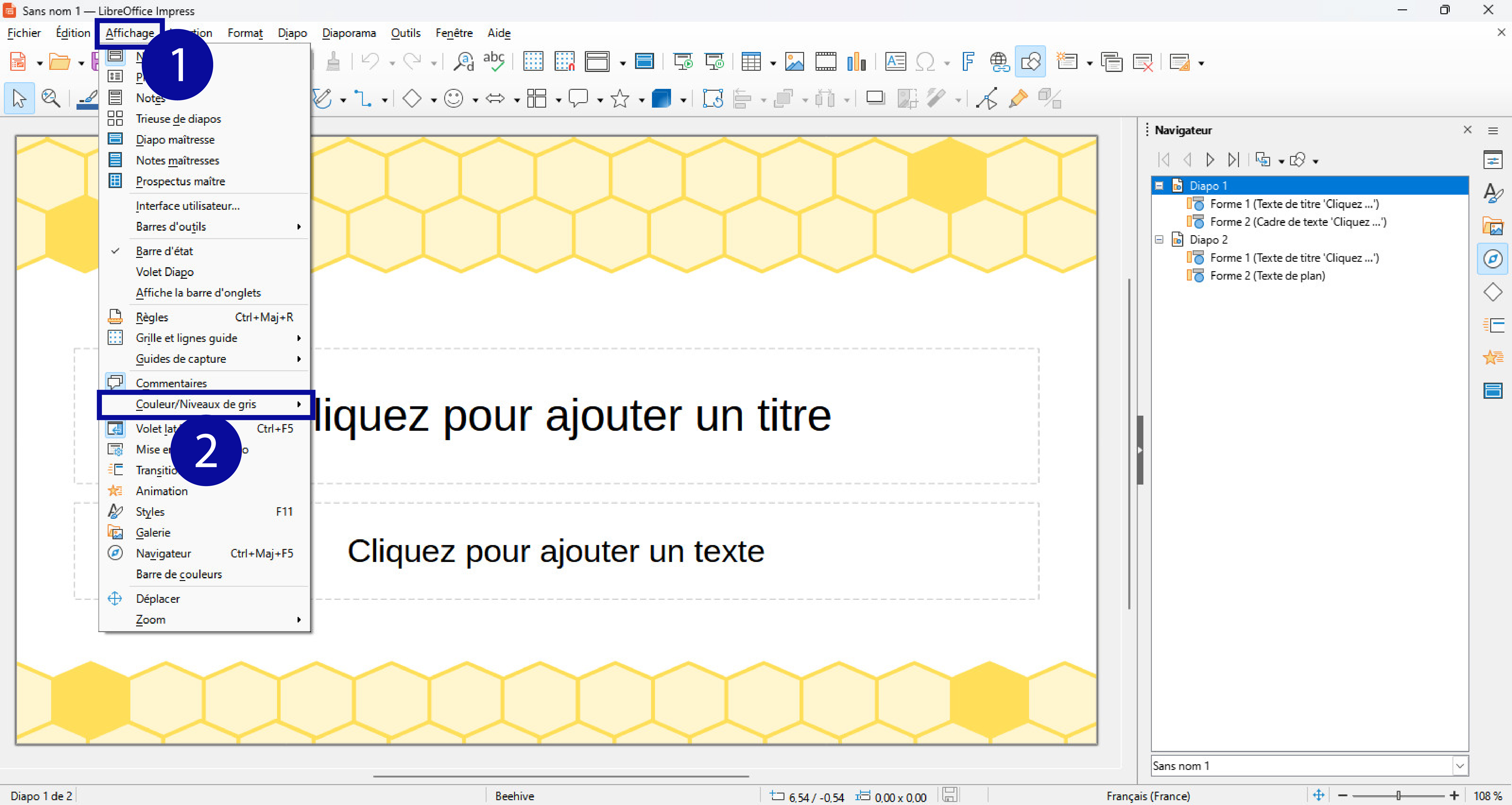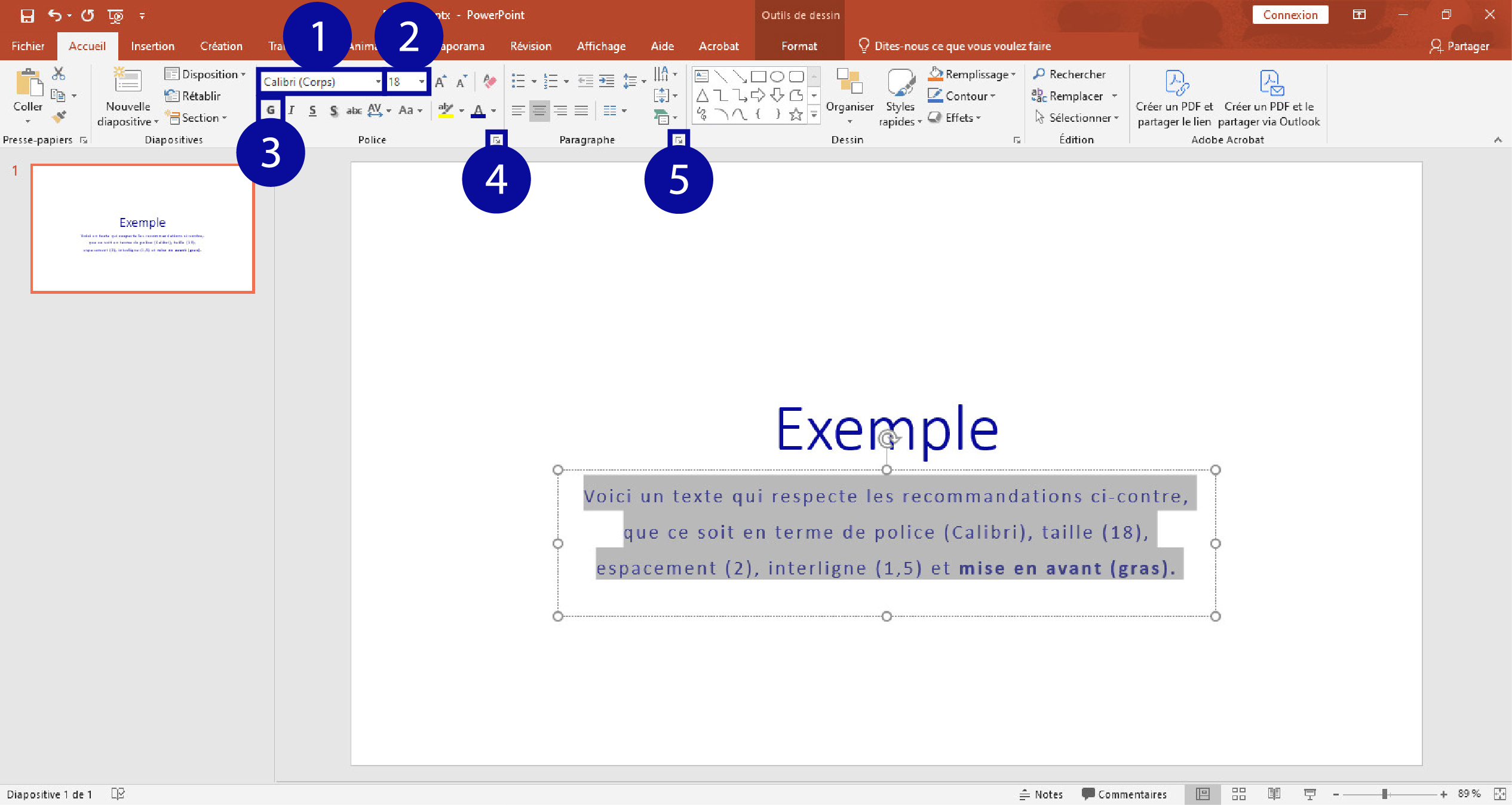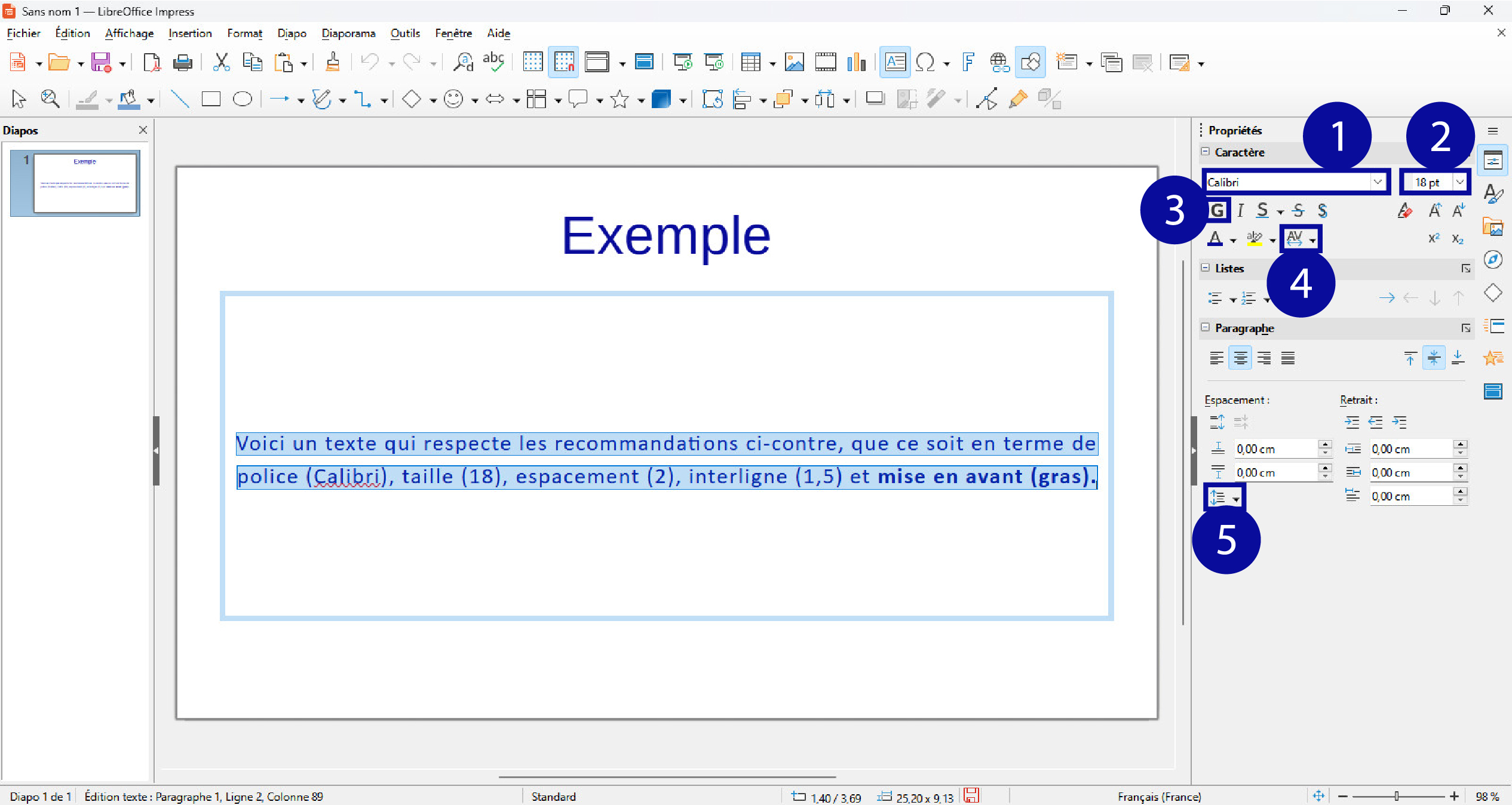 Dans ce cours nous illustrerons nos recommandations avec des exemples réalisés sur Word version Microsoft Office Professionnel plus 2019 ou sur LibreOffice Impress 7.6.4.